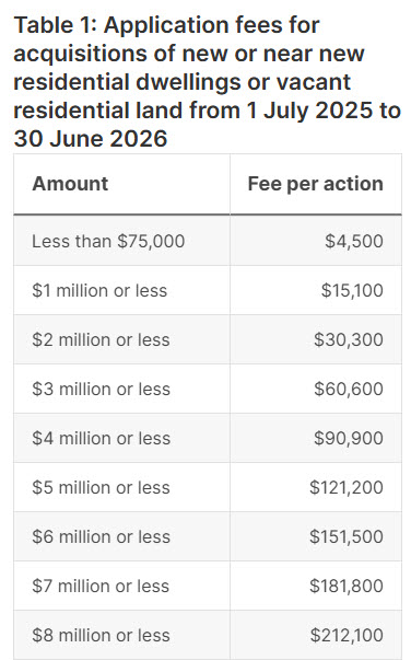 2025年7月1日起更新了收费标准,以下是购买新房的FIRB费用: