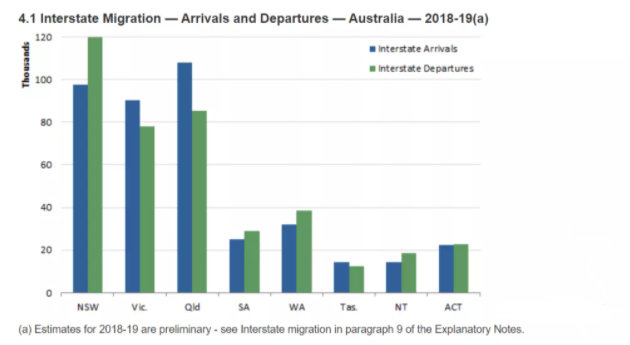 据澳洲统计局数据显示,2018至2019财年(截止2019年6月30日),昆士兰州洲际移民净增长为22,800人,成为最受欢迎的州际移民目的地。维多利亚州为12,200人,排在第二。而悉尼所在的新南威尔士州州际移民净流出22,100人。