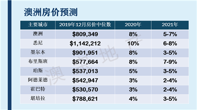 2019年底,澳洲知名房产网站对各大城市的房价情况作出了预估。当时,整个房市都在处于非常良好的状态。因此对于2020年和2021年,各个城市都有非常良好的增值的预测。