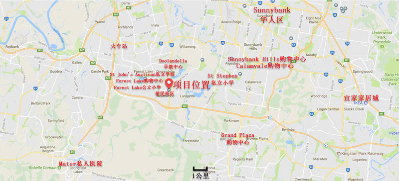 该项目位于布里斯班南区 - Heathwood,距离市中心17公里,距离华人区7公里,生活便利,基础设施完善。