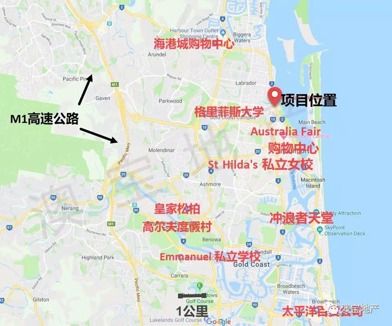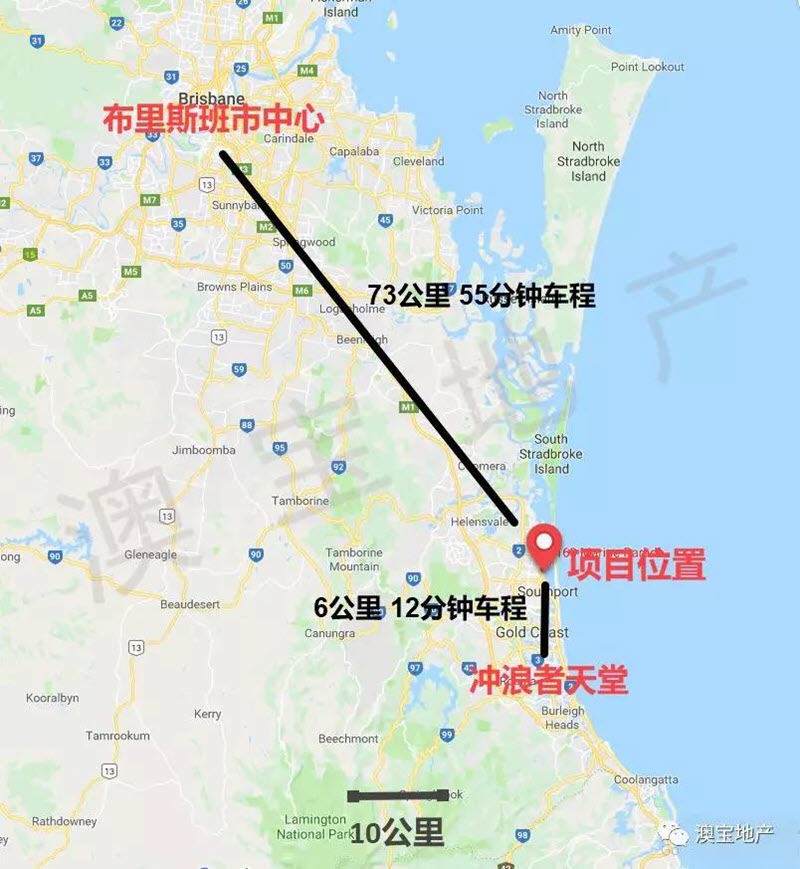 该项目位于黄金海岸Southport区域,Southport南港作为黄金海岸中央商务区CBD,被昆士兰州政府定为昆州优先发展区域,目前地区已有近20亿澳币基础投资项目已经建成或正在建设中,为黄金海岸提供近五分之一的工作岗位。项目位于南港地区的北部,公寓距离格里菲斯大学、黄金海岸医院、Australia Fair购物中心、黄金海岸游泳俱乐部、中国城China Town等都只有数分钟的车程,生化交通极其便利,是深受本地居民欢迎的方便社区。