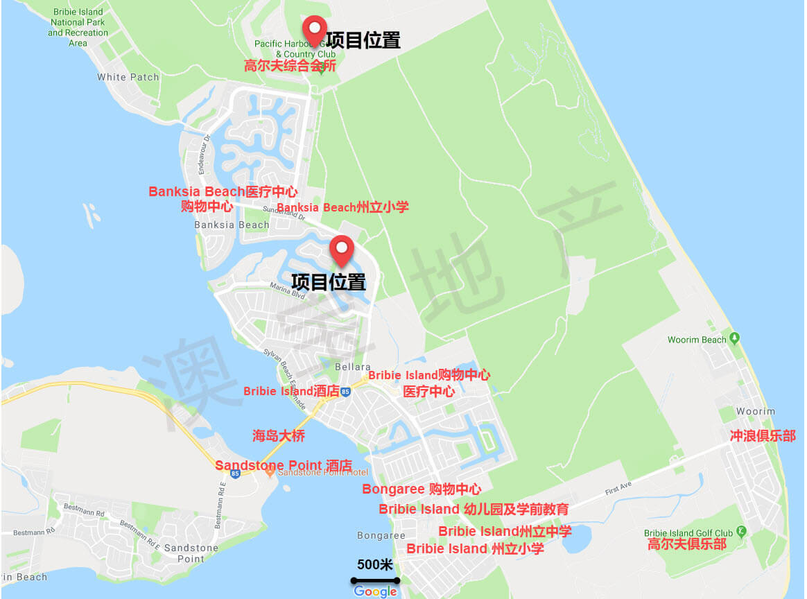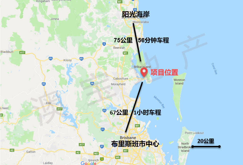 该项目位于布里斯班北部岛屿,距布里斯班市中心约一个多小时车程。这是昆州唯一一个有大桥与大陆相连的岛屿,可以直接开车上岛,十分便利。