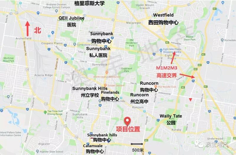 该项目坐落于布里斯班南部Runcorn区域,这里作为布里斯班华人生活气息密集的地区之一,毗邻这几处大型购物中心可谓是得天独厚。这里地理位置优越,拥有多个高速入口。项目步行距离可到达公交车站,直达南区最大的购物中心Garden City及市中心。并途径Griffith格里菲斯大学。该项目同时临近Runcorn购物中心,这里有南区最大的亚洲超市IGA华联和许多亚洲餐馆,是自住者和投资人的理想选择。