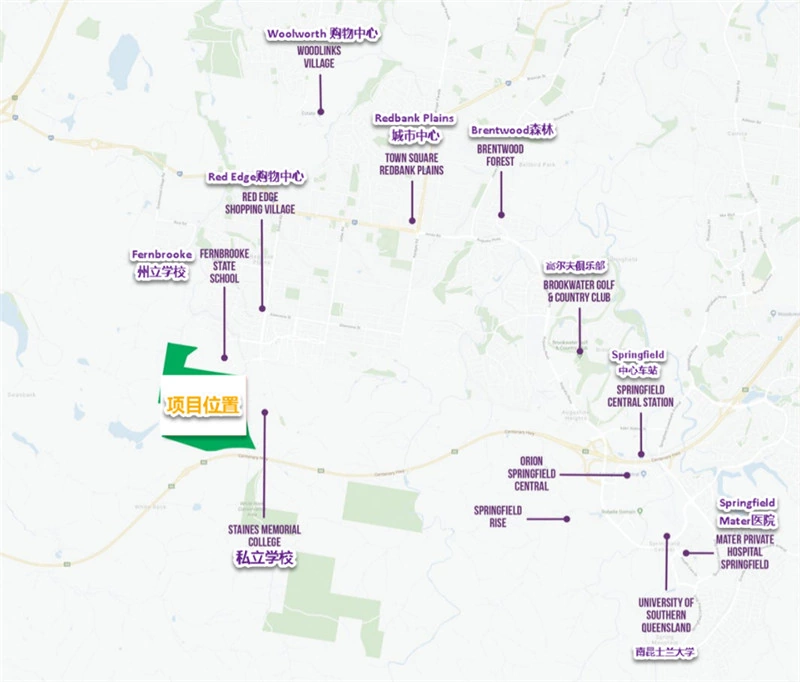 项目位于Redbank Plains,该区域位于Springfield与Ipswich之间,10分钟内方便抵达两个社区,可以享受一系列的社区福利。临近两个火车站及高速路,在35分钟抵达CBD并在39分钟抵达布里斯班机场,驱车仅1小时可达黄金海岸市中心。该项目是昆士兰东南部的发展最快的社区之一,完工后将容纳1200多个家庭。