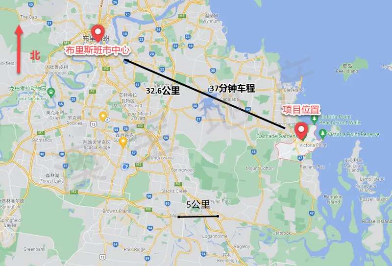 该项目坐落于市中心东南方向34公里的沿海区域,驱车三分钟即可到达Victoria Point公里高中和购物中心,五分钟即可到达美食中心和电影院,十分钟可达著名私立学校Sheldon College,七分钟便可到达码头,可以通往澳洲知名旅游度假胜地——摩顿岛,也可以从此地乘船出海。该项目所在社区设施完善,项目距离医疗中心仅需要五分钟车程。
