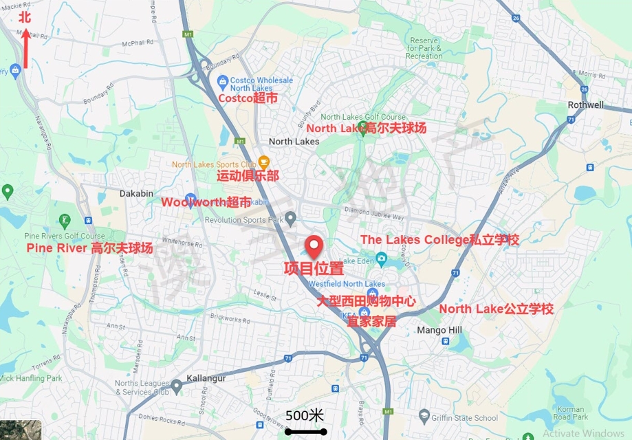 该项目位于布里斯班北部25公里处的North lakes区,紧邻Bruce Highway高速公路,直通布里斯班市中心(25分钟),阳光海岸(40分钟),黄金海岸(1小时),以及布里斯班机场(25分钟),到海边10分钟车程,交通十分方便。NORTH LAKES经过多年的发展,目前已建有三所购物中心,分别为IGA Convenience Centre, Westfield North Lakes,以及Neighbourhood Shopping Centre,包括了Myers,Coles, Woolworths等几大品牌,这三所购物中心分别位于区域的西、南、东部,将住宅区域围绕,使区域内居民生活购物尽可能方便。同时该区域也是布里斯班唯一一个有Costco,Westfield和IKEA同时入驻的地区。