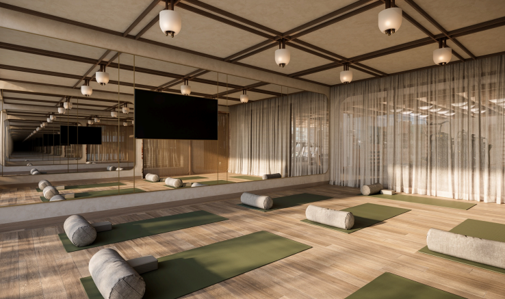 而 The Club 业主会所更侧重身心平衡与社交互动。这里设有私人用餐区与品酒空间、图书馆、影音室,以及共享办公区、独立办公舱与会议室,满足休闲、办公与社交等多重需求。健身与康养配套尤为完善,包括现代化健身房、瑜伽与普拉提空间、水疗池、冷热浸泡池、冰疗池、红光理疗床、蒸汽房、红外桑拿、按摩理疗室等设施,让运动、放松与修复形成完整闭环。