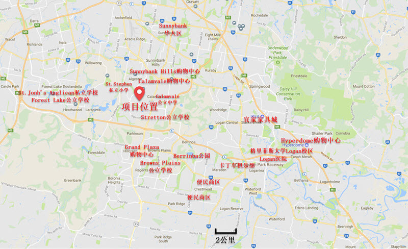 该项目位于布里斯班华人聚集地 - Calamvale。Calamvale是布里斯班发展得最快的区域之一,因为其时尚的设计、便利的基础设施、社区内景色和交通位置。