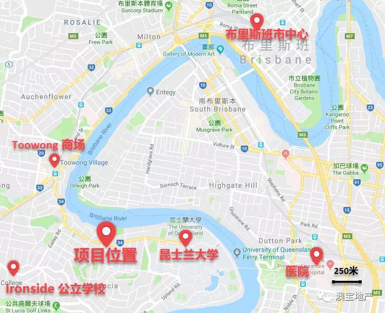 该公寓项目位于布里斯班西南部 St Lucia 区,St Lucia 区被认为是布里斯班最富裕的区域之一,区域东部大部分被昆士兰大学主校区占据,此公寓距离大学主校区仅十几分钟的步行路程,地理位置绝佳。