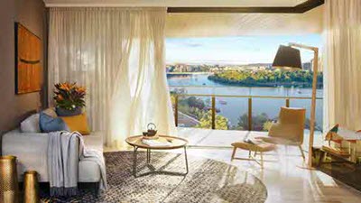 该豪华公寓项目位于布里斯班河畔的著名自然景观袋鼠角旁,站在公寓阳台眺望,不远处的皇家植物园四季如春,百花绽放。清澈的布里斯班河环绕着绚丽缤纷的中央商业区,加上葱郁的植物园点缀,让您享受完美精致的生活。