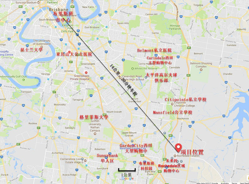 该项目的位置靠近布里斯班华人区Sunnybank,开车只需要5分钟;同时也靠近M3高速公路,附近拥有发达的交通系统,向南45分钟车程可至黄金海岸,向北20分钟车程即达布里斯班市中心。